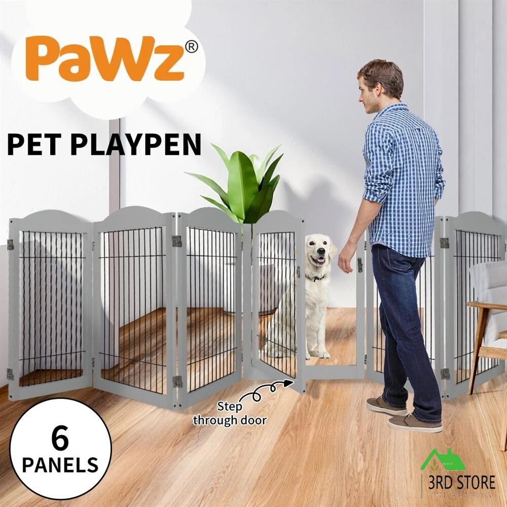 PaWz 6 Panels Pet Dog Playpen Puppy Exercise Cage Enclosure Fence Indoor Grey