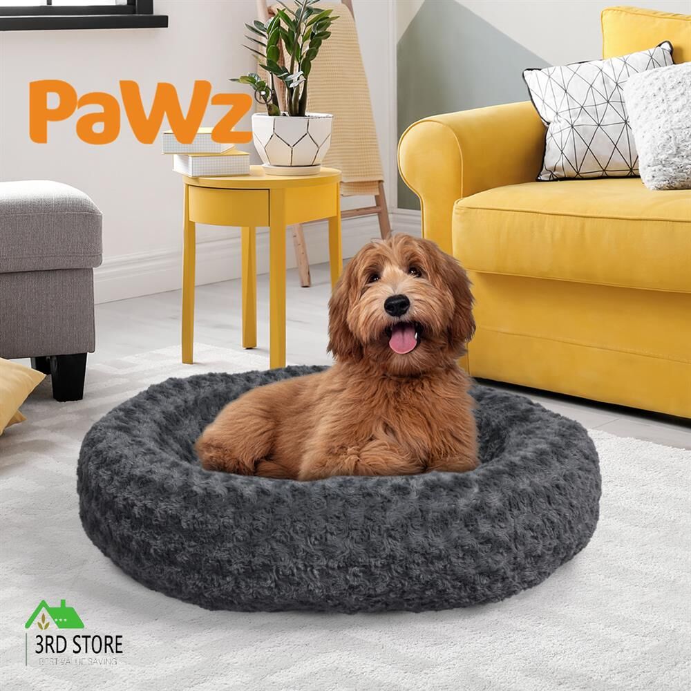 PaWz Calming Dog Bed Warm Soft Plush Pet Cat Cave Washable Portable Dark Grey M