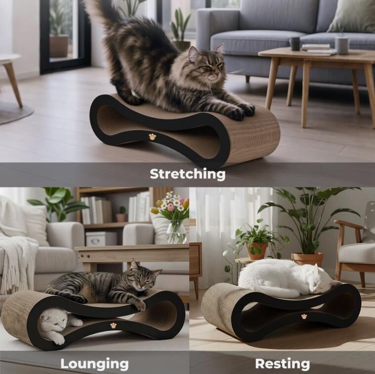 The Pawz Cat Scratcher Board combines multiple functions in one – a scratching pad, cat bed and lounging area. It also includes organic catnip to attract your cat naturally. With its minimalist brown and black design, the Pawz Cat Scratcher Board fits easily into any modern home. Choose Pawz for a stylish, sturdy and sustainable Cat Scratcher Board your feline will love.