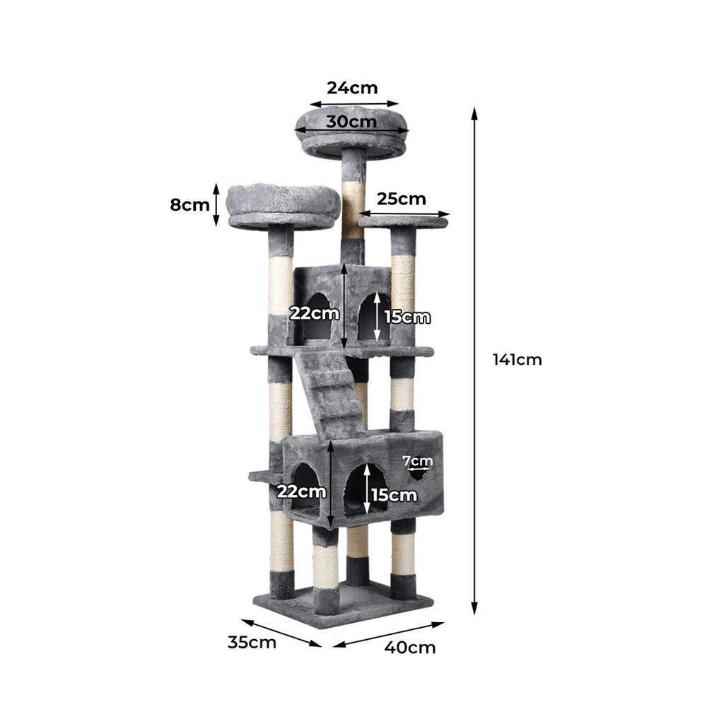 PaWz Cat Trees Scratching Post Scratcher For Large Cats Tower House Grey 140cm