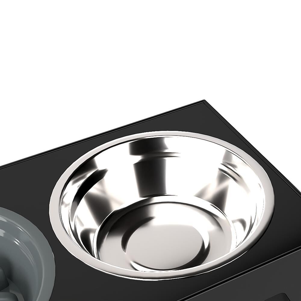 Made with durable, dishwasher-safe stainless steel bowls (1.1L capacity), the set includes two regular bowls and one slow-feeder bowl, all easily removable for cleaning. The foldable legs make storage a breeze, saving space when not in use. Ideal for homes or travel, this set ensures your pet eats comfortably and healthily.
