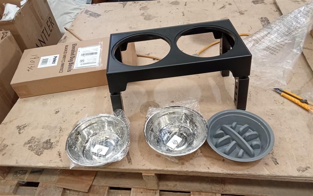 PaWz Elevated Dog Bowls 2 Stainless Steel Bowls and 1 Slow Feeder Bowl
