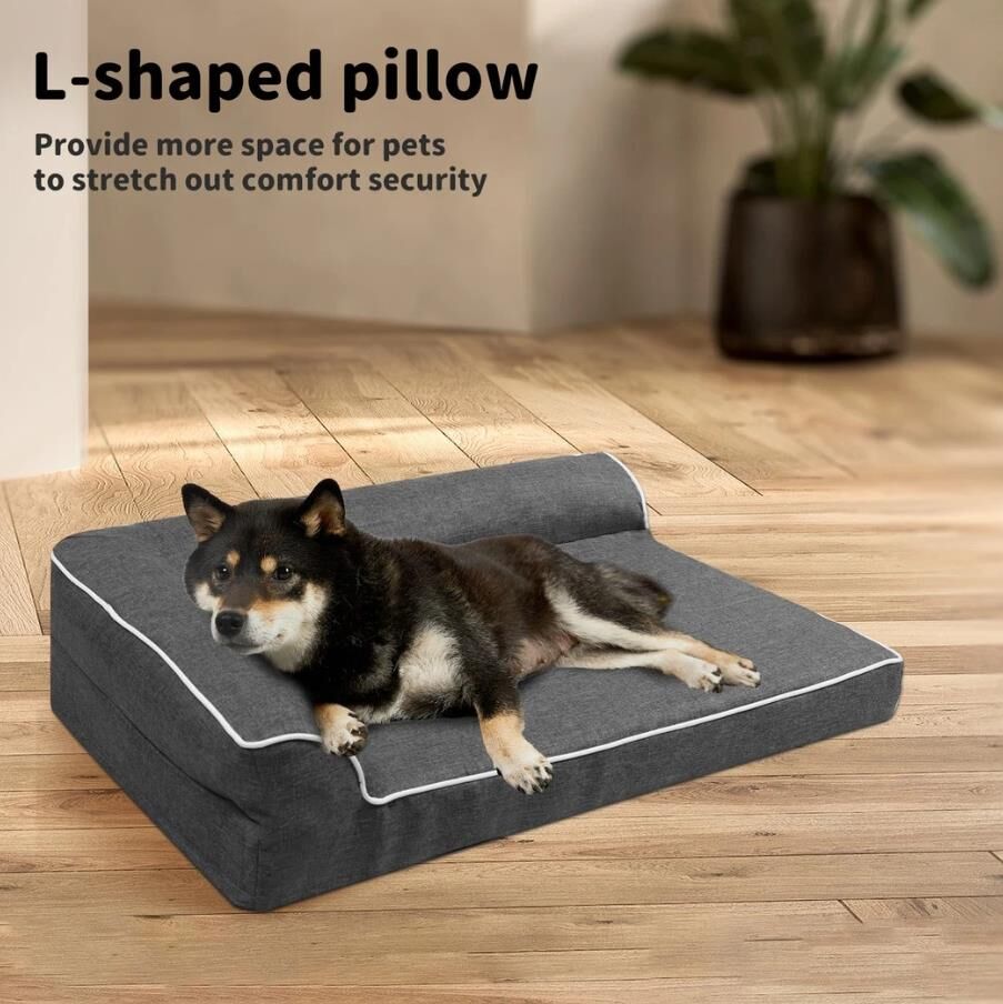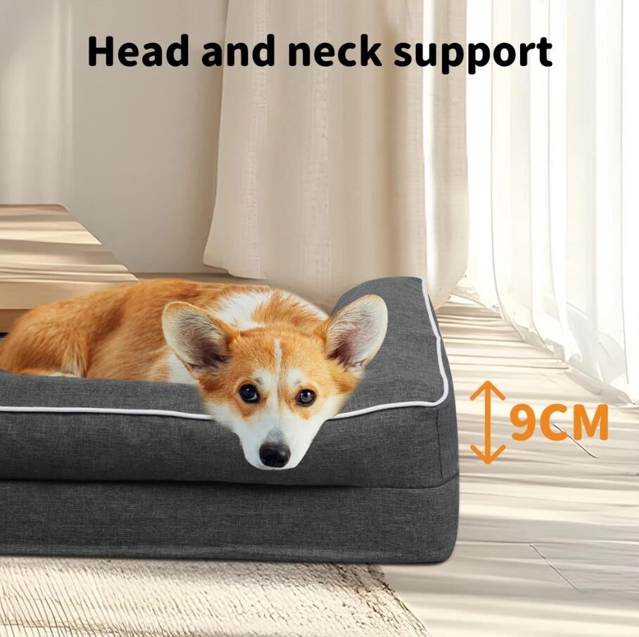 The unique L-shaped bolster sofa bed design offers additional support for your pet's neck and head, promoting deep, restorative sleep. The surrounding bolsters not only provide a sense of security but also allow your pet to snuggle comfortably and relax fully.
