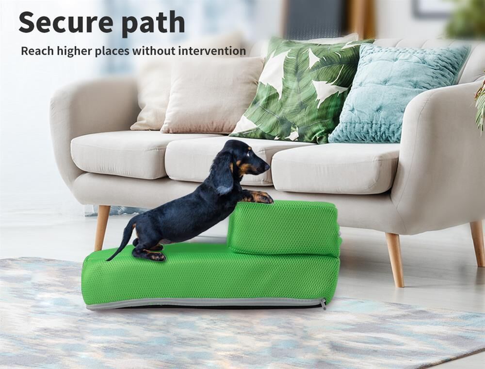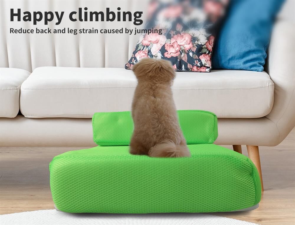 PaWz Pet Stairs with lengthening design can help them get safely up on the couch or their favorite spot on the bed. These sturdy stairs are made with high-density foam which are hardening without collapse. Anti-slip silica gel points are used at the bottom to effectively prevent sliding and ensure safety .What is more, It is foldable and can create a higher staircases by adding more stairs on top.Washable and detachable cover for easy cleaning.Let your pet access all their favorite places to snuggle and slumber with this pet stairs.