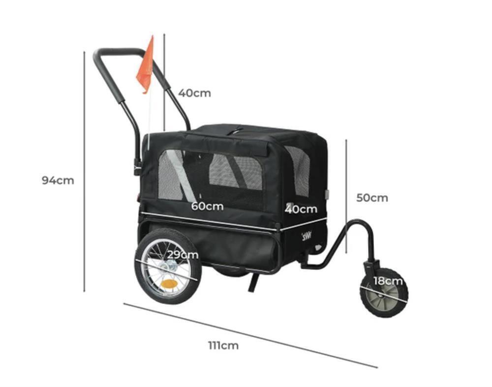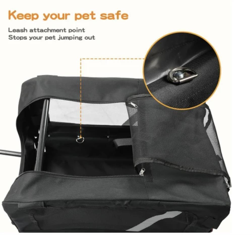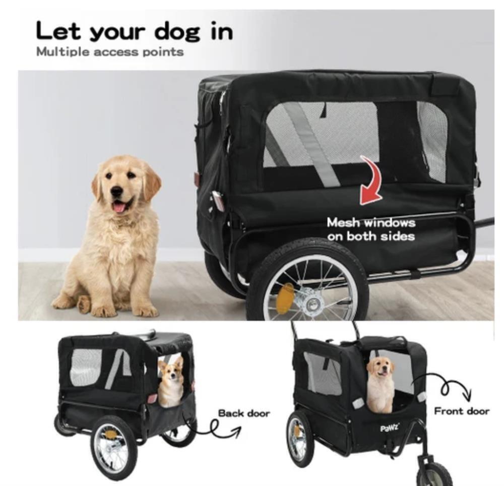 Your dog bike trailer and combo pet stroller can protect your doggo from rain, hail, and shine. Might not help if you cycle through giant puddles. Stay safe and remember you got your dog behind you.