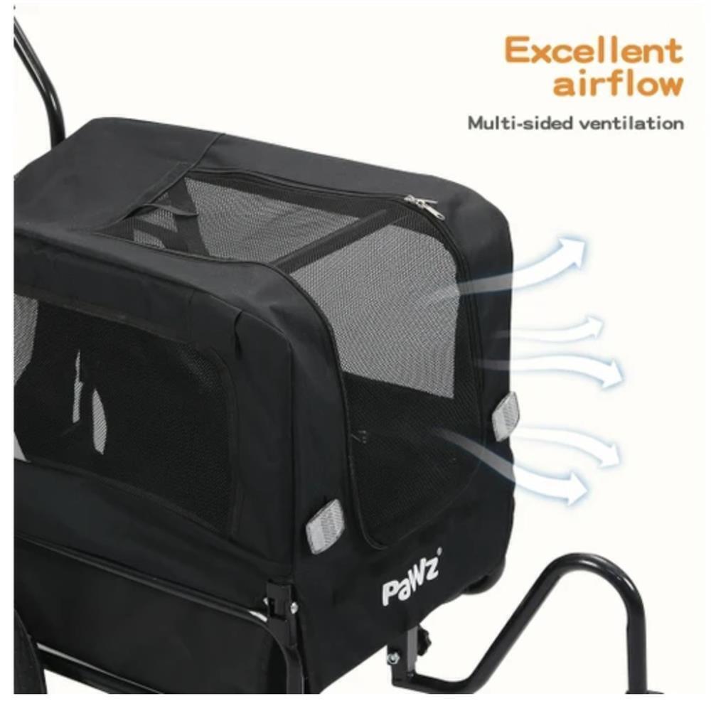 Summer gets hot but your dog bicycle trailer has lots of ventilation. Keep your pet cool while cycling or jogging. You might get wet when it rains but your dog will stay drier. Save your house from a wet dog trying to get dry.