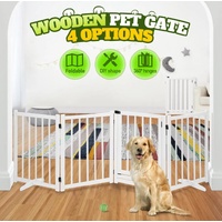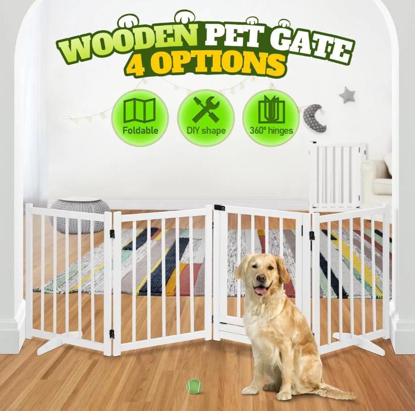 Pet Safety Gate 4 Panel Puppy Playpen Wood Enclosure Security Fence Freestanding