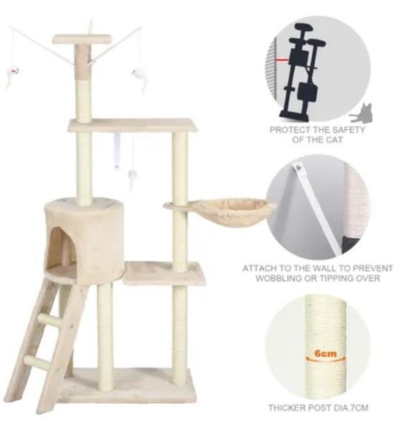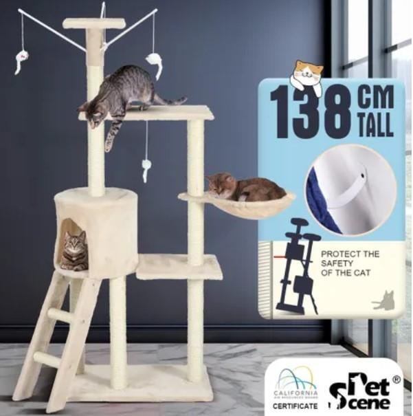 Petscene 138cm Cat Gym Scratching Post Tree Cat Tower w/ Cat Condo Hanging Toys