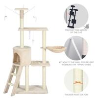 There's no way to go wrong with the Petscene 138cm Cat Gym Scratching Post Tree if your feline friends always enjoy being in high places around your house. The cat tree boasts one private condo, one basket lounger attached on the scratching posts, three hanging pom-pom mice toys for batting around and three perching spots for your cat to rest on and observe what's going on around them. Let your cat scratch away happily by ordering this nice piece of cat furniture.