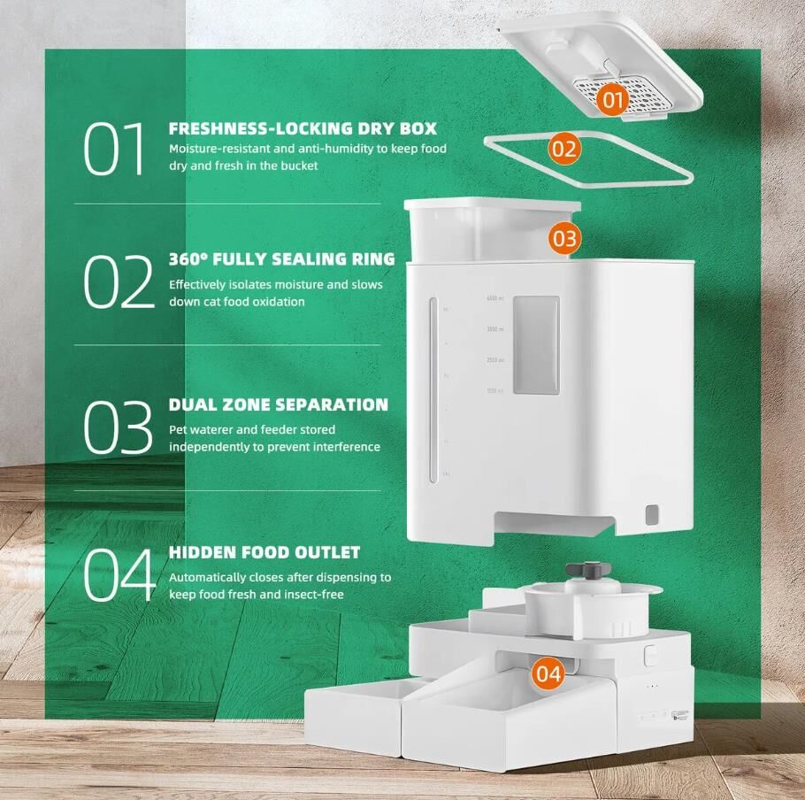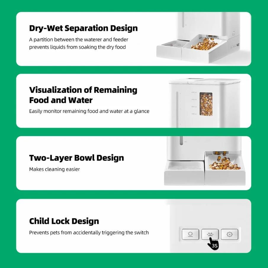 - User-Friendly Operation: The user-friendly settings make setup and programming a breeze. The removable, cleanable parts foster a healthy environment for your pet’s food.