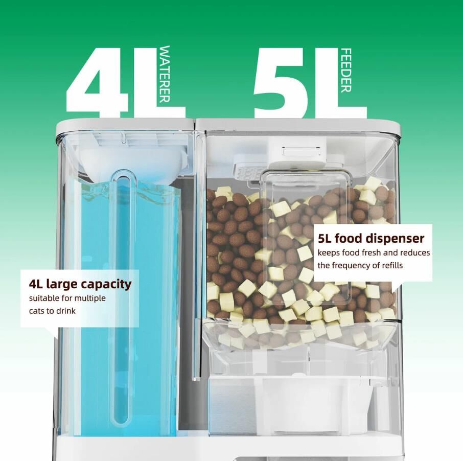 - High-Capacity Food Storage & Water Tank: The 4L food storage and 5L water tank will keep most pets comfortably fed and hydrated for several days. Easily keep your cat or dog fed during long weekends and short business trips. Enjoy the peace of mind of a full and happy pet.