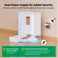 - Wired or Battery Power: Choose between a fixed wired connection with the 5V adapter USB power cable or a portable 3 AA alkaline battery-powered feeding station. Flexible options prevent your pet from going hungry during power outages.
