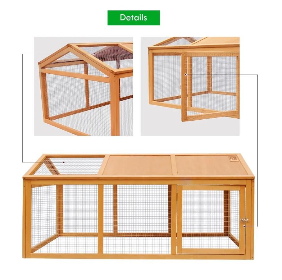 - Simple Design: Enclosed run with durable metal mesh and durable wood.