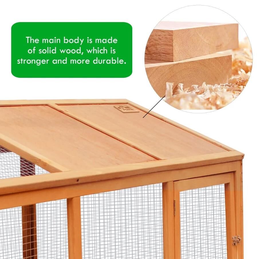 - Durable Construction: Good quality Fir wood is suitable for you raising rabbits, chicken, or other small animals. The chicken coop has an expansive living area with the heavy-duty wire could prevent from being invaded by other animals and stop your pets ruining your garden.