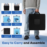 Create the perfect setting for professional-looking photos with our Portable Black Photo Studio Soft Light Tent Box Kit. Great for shooting jewellery, watches, toys, cosmetics, food, and other small items, this compact photo studio fills evenly with light to deliver sharp, detailed images. It features 40 dimmable, flicker-free LED lights that provide consistent brightness, even when shooting with a smartphone. With 10 adjustable brightness levels (1%–100%) and three colour temperature options (white, warm, and soft), you can tailor the lighting to suit any product or environment. Moreover, the photo shooting tent kit contains six coloured backdrops (white, black, yellow, red, green, and blue) to match a variety of scenes and product types. Engineered for maximum convenience, the hook-and-loop assembly makes setup simple, and the foldable design ensures easy storage and portability. Further, the built-in USB cable powers the light box via charger, power bank, computer, or any 5V USB source, making it ideal for home or on-the-go use. This photography light tent is a must-have for any photographer, artist, online seller, or product advertising project.