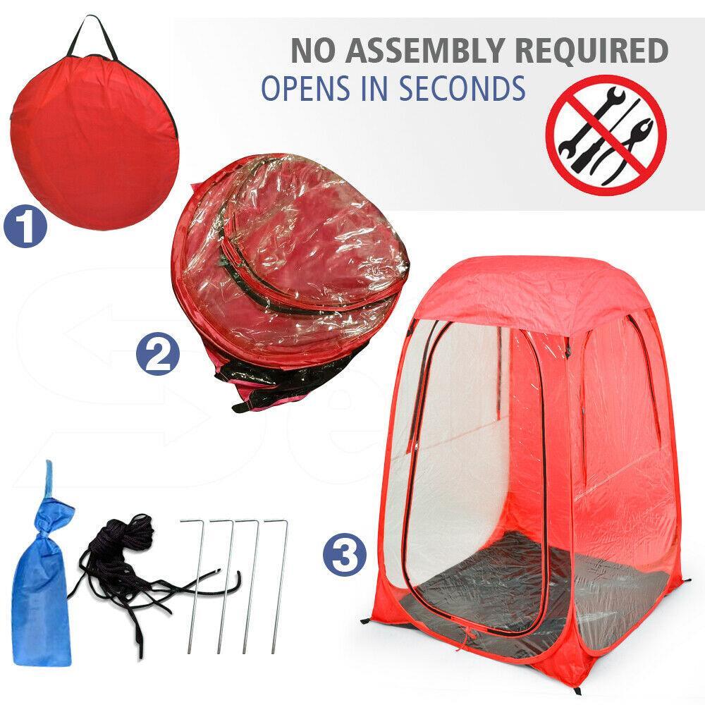 The patented design is constructed of durable steel wire, water and wind resistant polyester and cold-treated clear PVC. Customers love our personal pods because they pop-up and fold down in minutes. Matching carry case, roof, and ground stakes included.