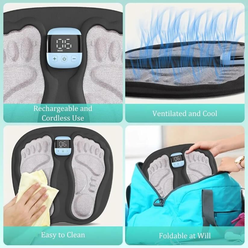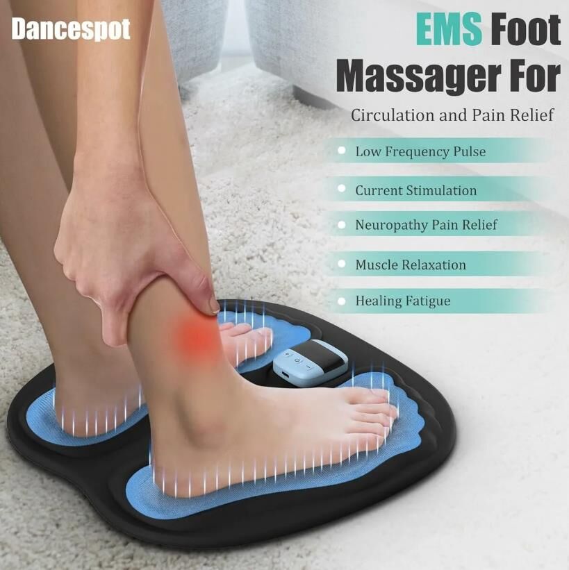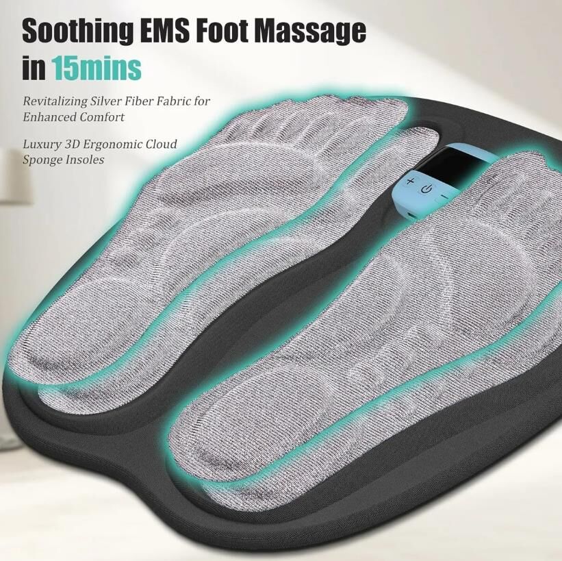 Portable EMS Foot Stimulator with Remote Control, 3D Foot Massager Pad for Circu