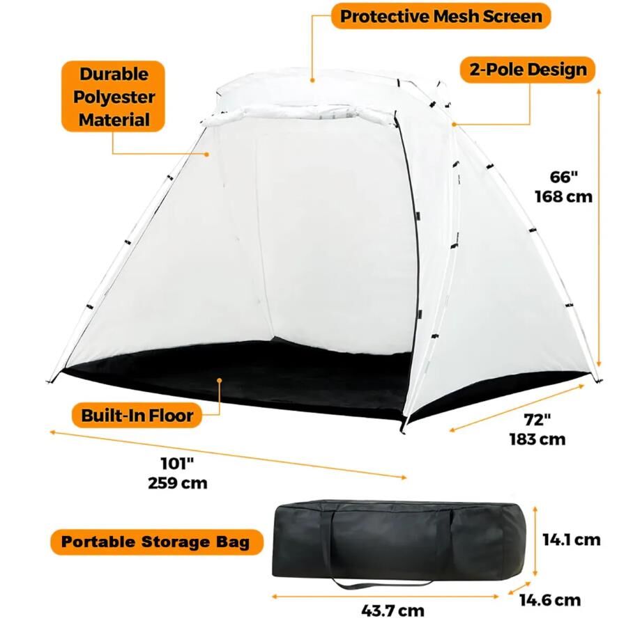 - Built-in Floor: Curved tent with floor for all-around protection. Confident spray painting, keeping the studio clean
