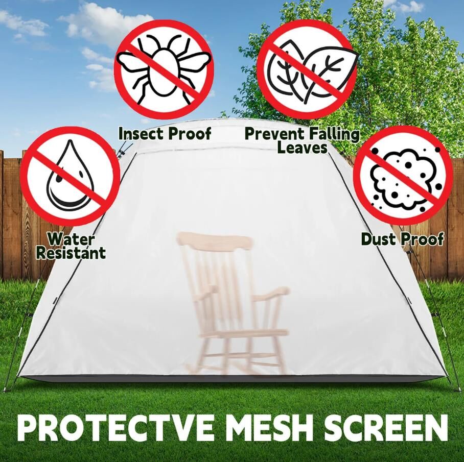 - Protective Mesh Screen: Shields against wind, bugs, dust. Easily rolls and ties when not in use