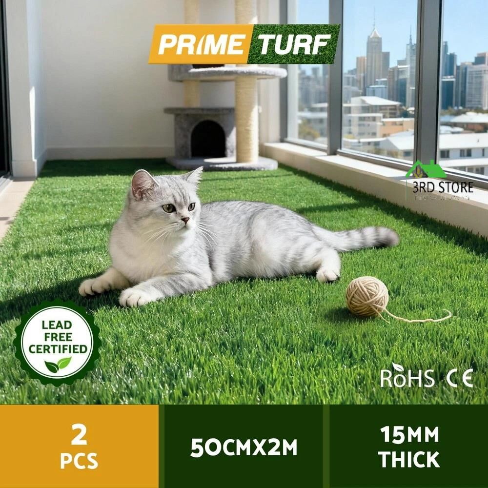 Prime Turf Artificial Grass Turf Rug Fake Grass 2 Rolls 15mm Height 50cm x 2m Indoor Outdoor Synthetic Grass Mat Carpet with Drainage Holes Plastic Pl