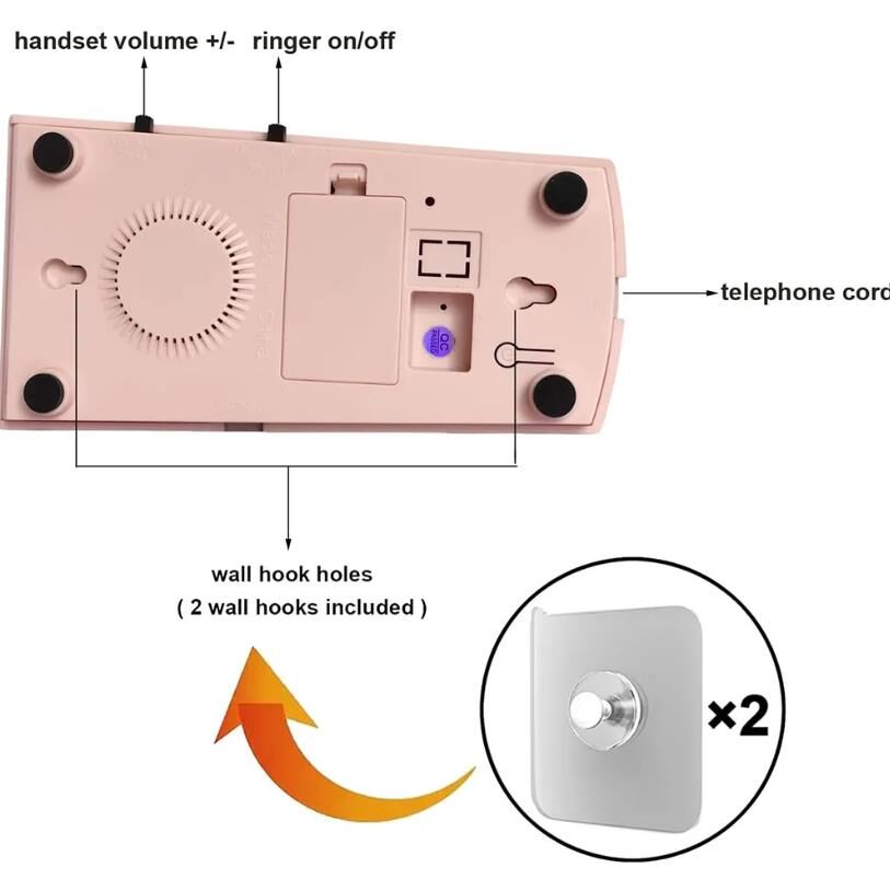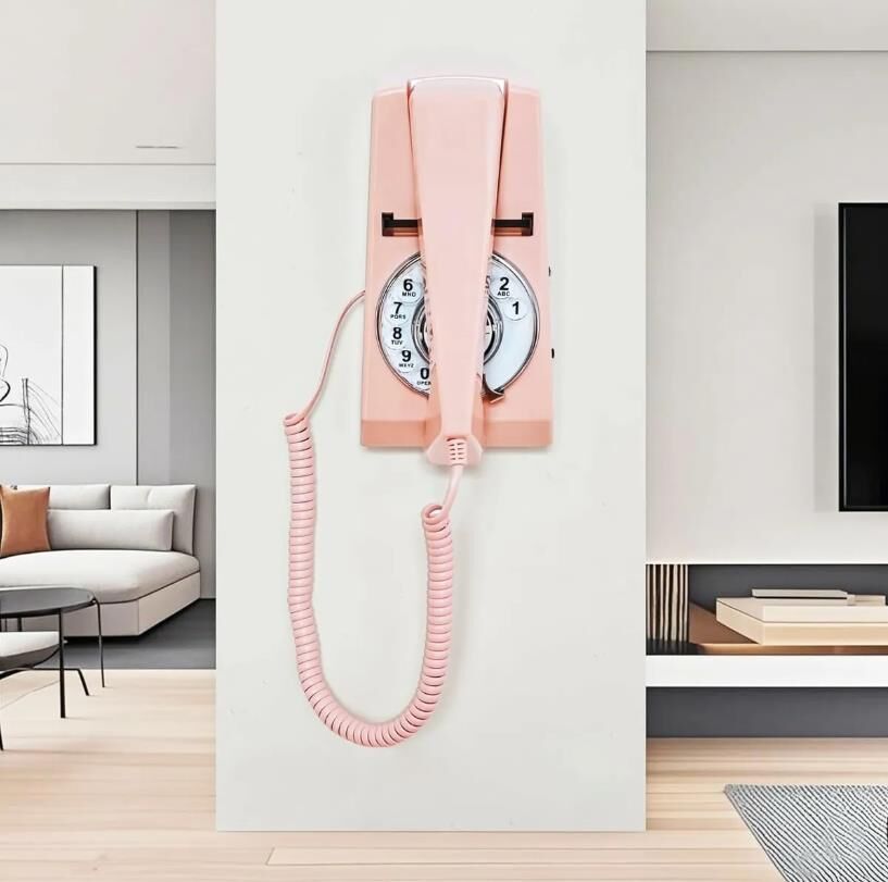 - Easy to Install & Use: Simple Basic wall phone with one telephone cord and one handset cord included in the package; plug and play. Decorative Landline Retro Phone with vivid colors: This old fashion retro home telephone is of a classic 1960s vintage design and a pretty red/ pink/ /ivory/ black/light coffee color, it could be a grand European and US Style home, office hotel or school furniture decor.).