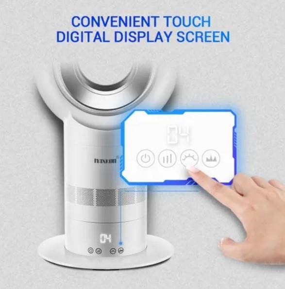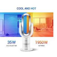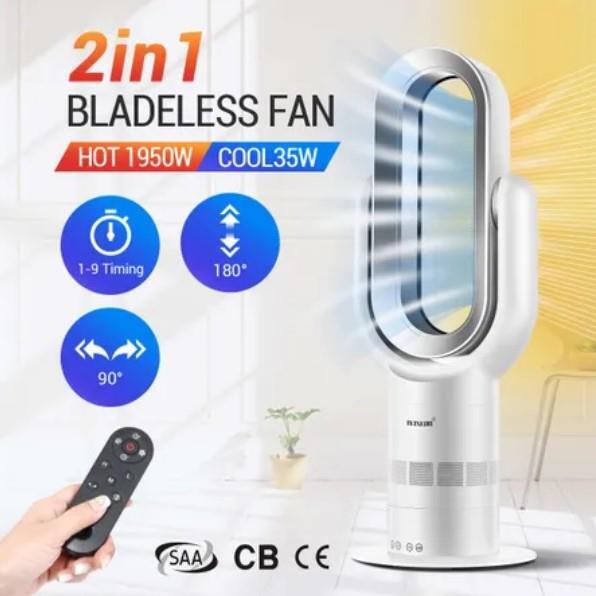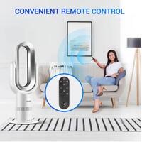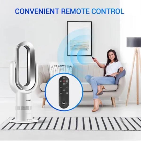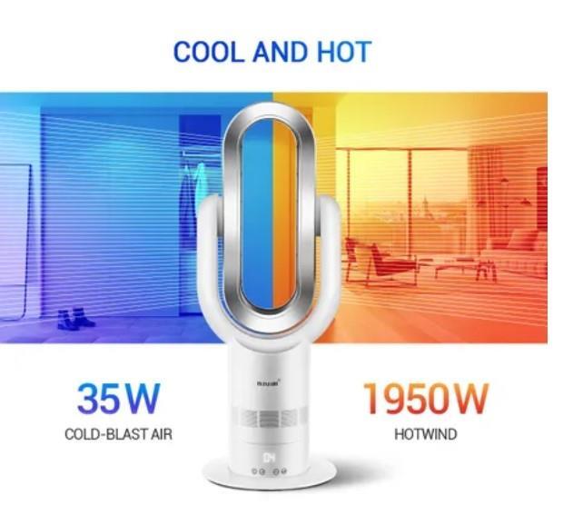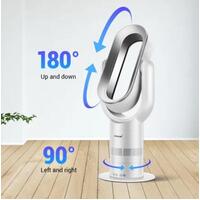 This 2 In 1 Bladeless Fan features a sleek design and is an energy-efficient solution to heating and cooling. Safe for children and pets, the leafless fan uses air multiplier technology to deliver the heat and cool air to your space quickly and evenly for a comfortable environment. Thanks to its intelligent thermostat, the fan heater reaches and maintains your selected temperature quickly. Built with an LED touch screen, timer function and infrared remote control, this cooling fan is easy and convenient to operate. The fan body is 90-degree oscillating while the airflow is 180-degree rotary vertically.