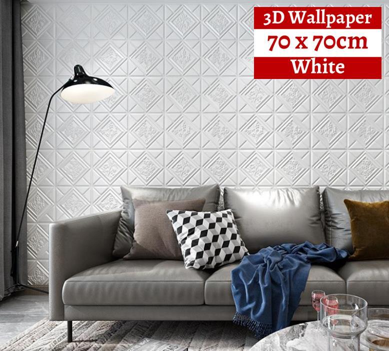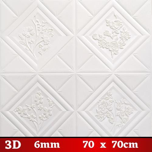 3D White diamond shape with flowers prints wallpaper tiles are embossed, self-adhesive and, a new solution for your walls.