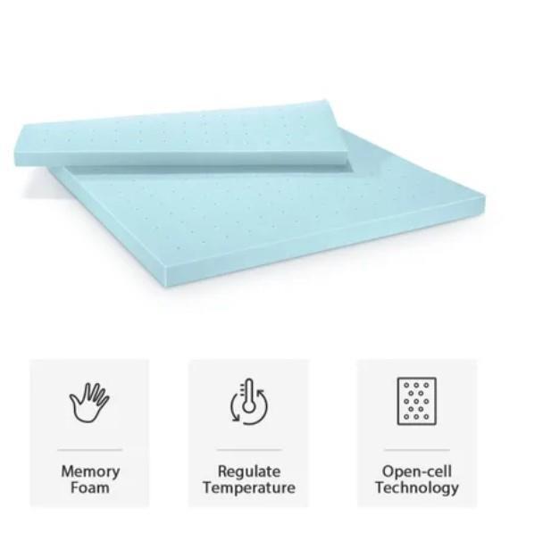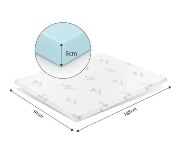 Plush 8cm thick memory foam topper is infused with gel to help regulate temperature for the optimal sleep experience
