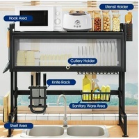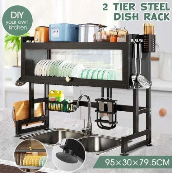 RETURNs 95CM Over Sink Dish Drying Rack 2 Tier Cutlery Utensil Drainer Holder Storage