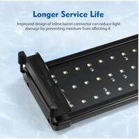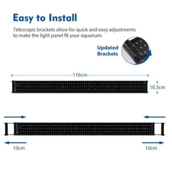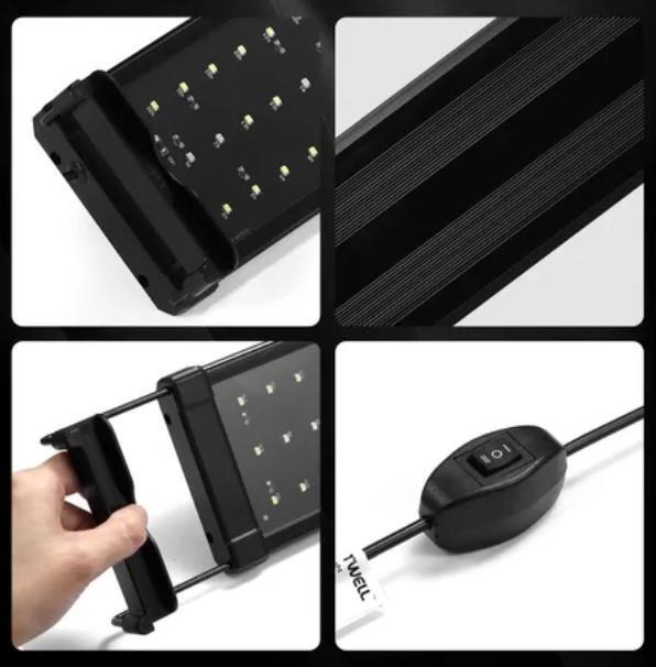 Telescopic metal bracket makes the LED light fit fish tanks of different sizes.