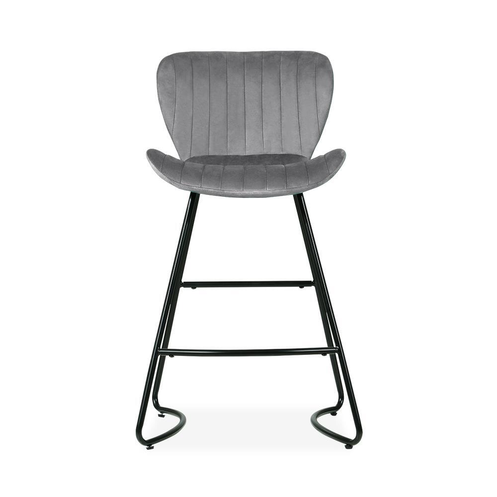 RETURNs Artiss Set of 2 Bar Stools Kitchen Stool Velvet Dining Chairs Grey Barstool Chair Metal