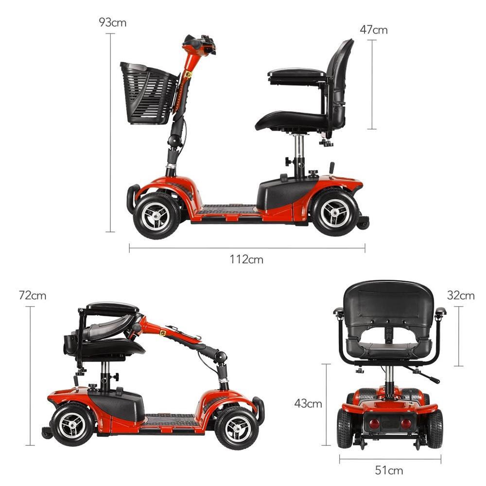Since having this mobility scooter, going to shopping centres or other public areas will be much easier and more convenient. Perfect for the elderly, the injured or those with limited mobility or those who tire easily, this scooter features an easy-to-control tiller, adjustable armrests, handlebars, and seat, and gives you spacious legroom, comfortable seating and back support, offering a much more enjoyable driving experience even without the assistant of others.It is incredibly simple and safe to maneuver and operate thanks to its compact and lightweight design and four sturdy non-slip tyres. Allow yourself or your loved ones to do a lot more while outdoors and live in an active, exciting and fulfilling life.