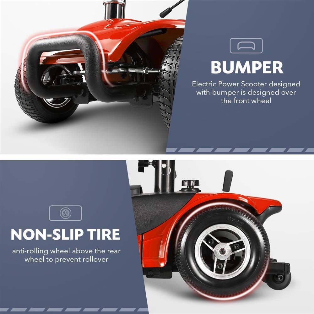 RETURNs AUSWHEEL Portable Travel Mobility Scooter Front LEDs Horn Button 4 Wheels Red