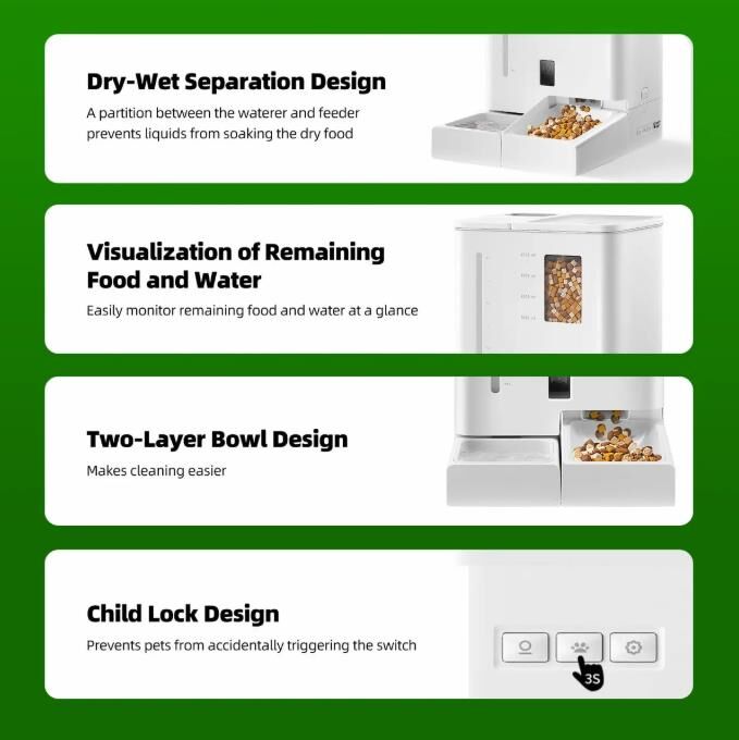 - High-Capacity Food Storage & Water Tank: The 4L food storage and 5L water tank are capable of comfortably feeding or hydrating most pets for several days, ideal for long weekends and short business trips, providing peace of mind knowing your pet is full and happy.