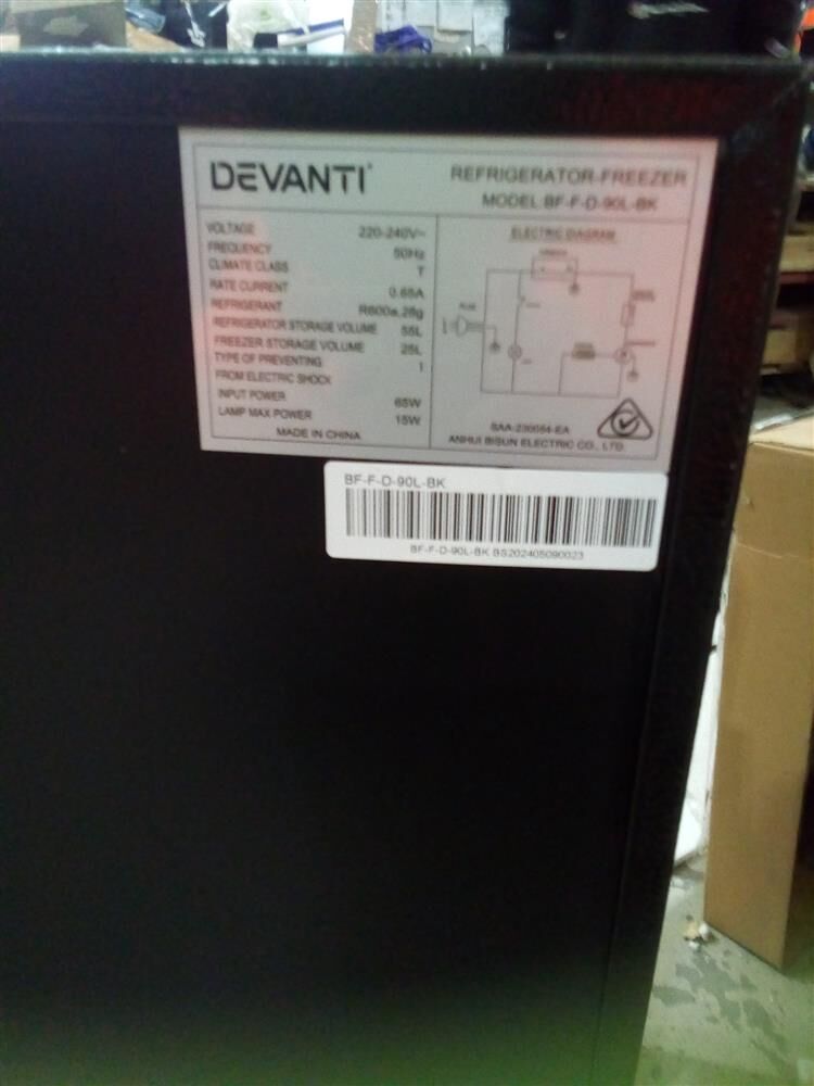 RETURNs Devanti 80L Bar Fridge Mini Freezer Refrigerator Cooler Home Hotel Office Black