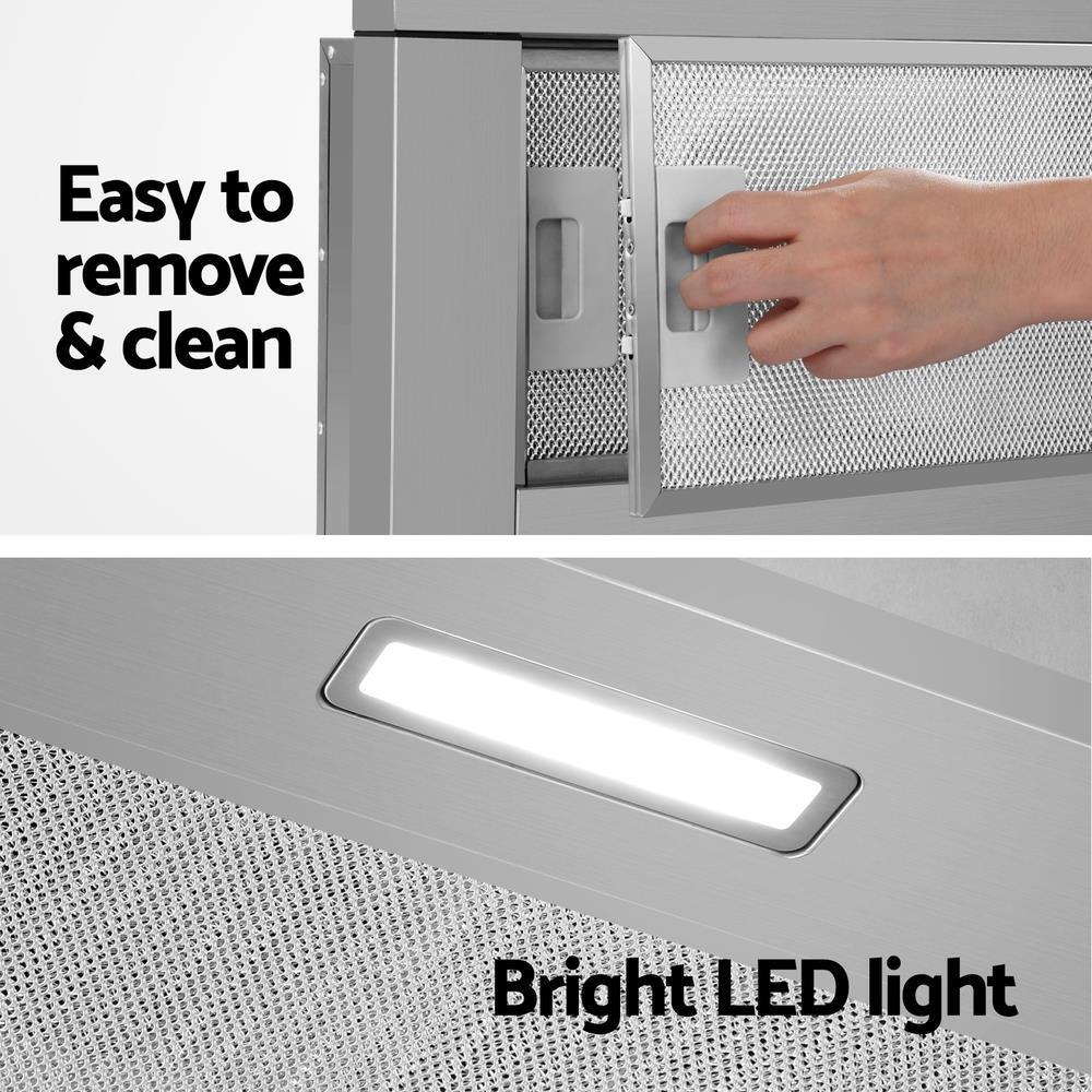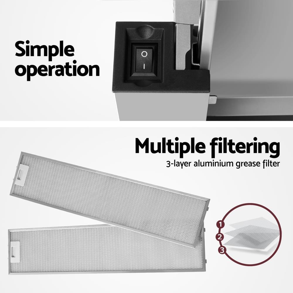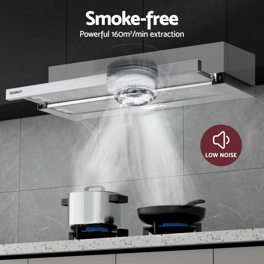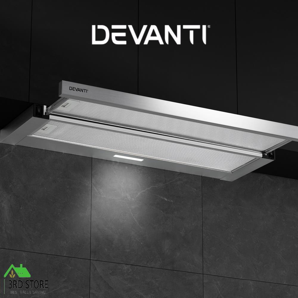 RETURNs Devanti 900mm Range Hood 90cm Slide out Rangehood Stainless Steel