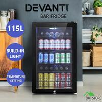 RETURNs Devanti Bar Fridge Glass Door Mini Freezer Fridges 115L Countertop Beverage