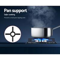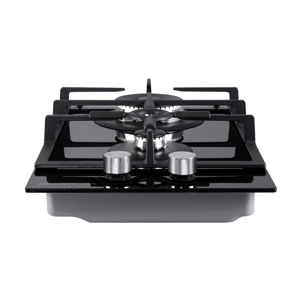 Whether it is for your existing or new home, our Devanti 30cm Gas Cooktop is just the right thing you need for easy, no-fuss cooking. Loaded with an extensive list of chef-friendly features such as an easy ignition system, easy-to-use power-coated knob control with a safety lock and flame failure safety device, the cooktop is also incredibly sleek with its black tempered glass surface. It features two burners, a wok burner and one auxiliary burner, with various power levels to choose from to prepare that perfect dish. The solid cast iron grates hold up your pots and pans perfectly steady and are longlasting and heat-resistant as well. And a pan support is included for use with the auxiliary burner to prevent tiny pans from tipping over and messing up your cooktop. The cooktop is factory set for natural gas but is compatible with LPG once the included LPG conversion kit is installed. Powerful and yet integrally safe, the cooktop promises many moments of hassle-free delicious cooking with the right blend of sophistication and class for your kitchen.