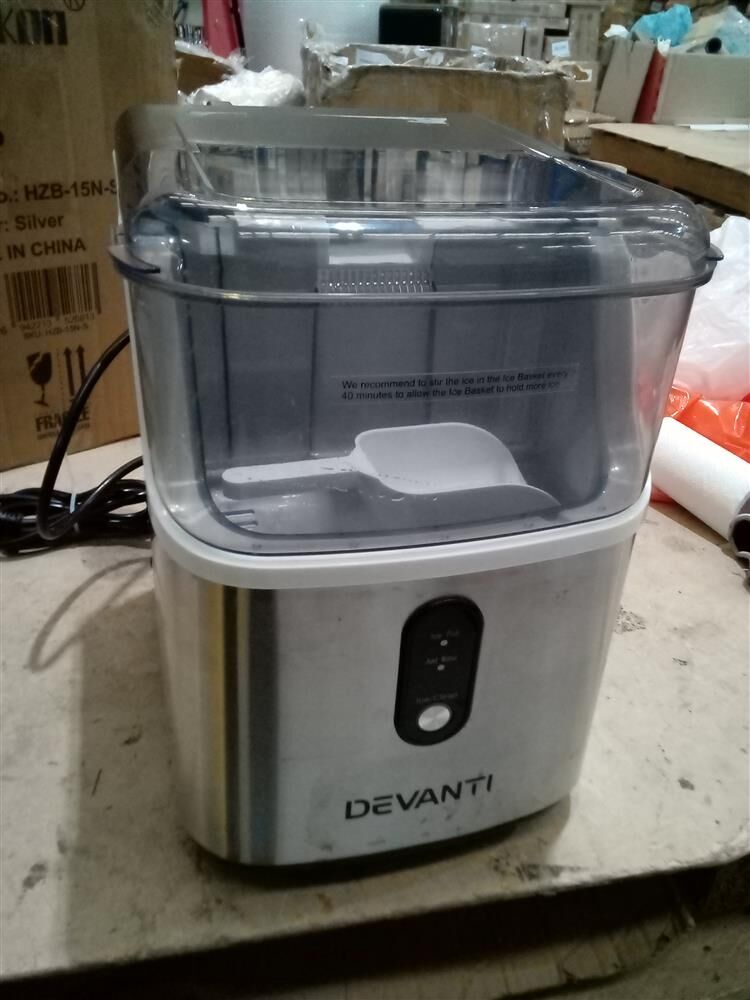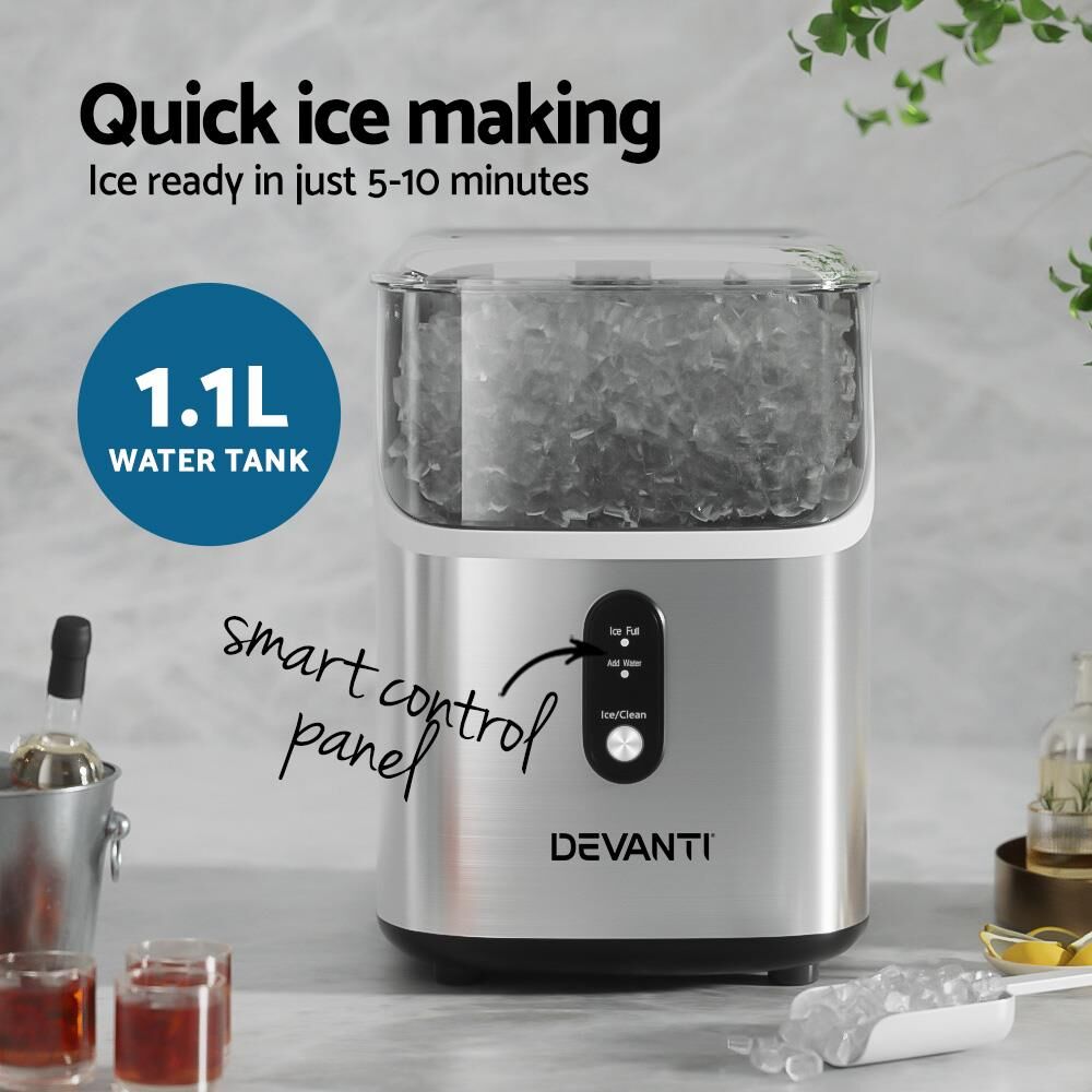 RETURNs Devanti Ice Maker Machine 15kg Nugget Ice Cube Tray 1.1L Countertop Portable