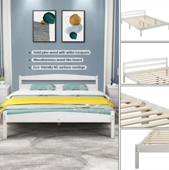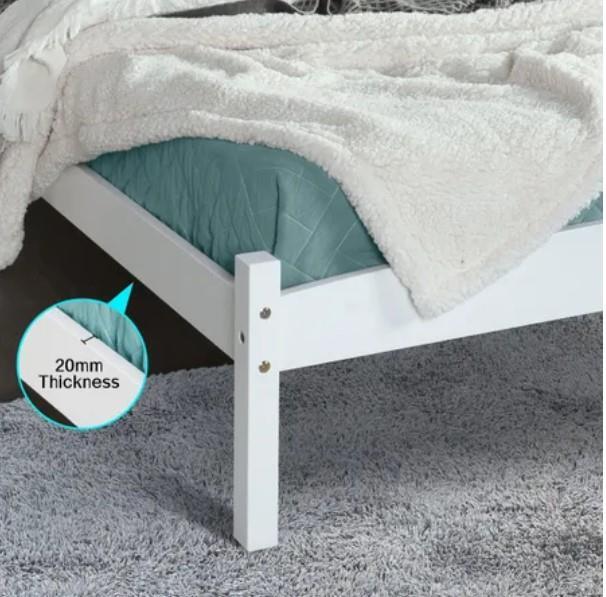 Sturdy and stylish, the wooden bed frame is made to achieve your goal - get a better night's sleep every night. It is integrated with strong wooden slats and legs for superior durability and reliability, highlighting extra middle legs for enhanced support and strength. The minimalist design in chic white finish looks great in a range of modern or vintage bedrooms. Easy to assemble and set up, the package includes a clear step-by-step guide for your preference. This impressive wooden bed frame will surely be a strong foundation for your precious mattress.