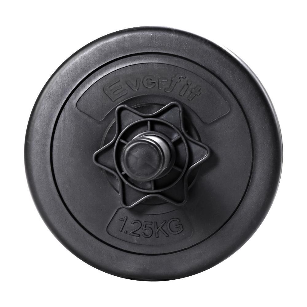 Time to get tough. And our Everfit 12kg Dumbbell Set is the right deal if you are looking to boost those triceps, biceps and shoulders. Or lose some unwelcome fat. Whatever is your game, our dumbbell set lets you strengthen and tone those muscles in pleasing style. The commercial-grade dumbbell features a high-quality bar with non-slip handle that offers optimal gripping surface. Each weight plate weighs 1.25kg and is made of cast cement that is coated with smooth plastic, reducing clanging sounds and making it floor-friendly. You can adjust the weight of the dumbbell by removing the weight plate and only using the dumbbell bar (weighing 1kg each) or adding more compatible weight plates. And the high-quality steel star-shaped nuts ensure the weight plates stay securely in place for safe workouts. Best of all, the dumbbell comes in a set of two (two 6kg dumbbells for 12kg total) so that you can exercise both arms at the same time. Gym junky or workout pro, you can get fit easily with our dumbbell set.
