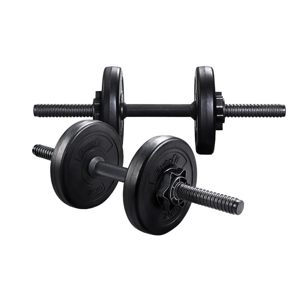 Time to get tough. And our Everfit 12kg Dumbbell Set is the right deal if you are looking to boost those triceps, biceps and shoulders. Or lose some unwelcome fat. Whatever is your game, our dumbbell set lets you strengthen and tone those muscles in pleasing style. The commercial-grade dumbbell features a high-quality bar with non-slip handle that offers optimal gripping surface. Each weight plate weighs 2.5kg and is made of cast cement that is coated with smooth plastic, reducing clanging sounds and making it floor-friendly. You can adjust the weight of the dumbbell by removing the weight plate and only using the dumbbell bar (weighing 1kg each) or adding more compatible weight plates. And the high-quality steel star-shaped nuts ensure the weight plates stay securely in place for safe workouts. Best of all, the dumbbell comes in a set of two (two 6kg dumbbells for 12kg total) so that you can exercise both arms at the same time. Gym junky or workout pro, you can get fit easily with our dumbbell set.