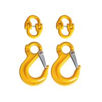 You have a pallet of parts and you want them on the second level. Hook your hammerlock chain connectors up. Clip the eye sling hook to your pulley and off you go.