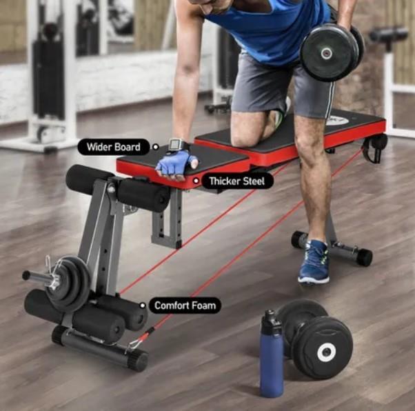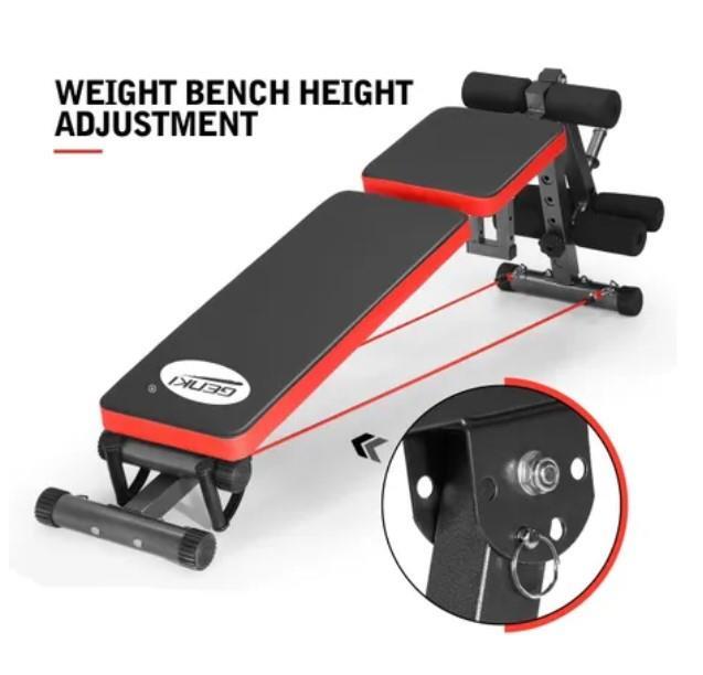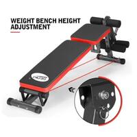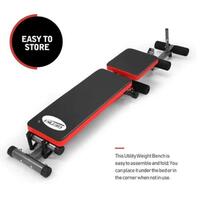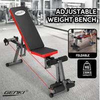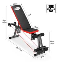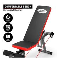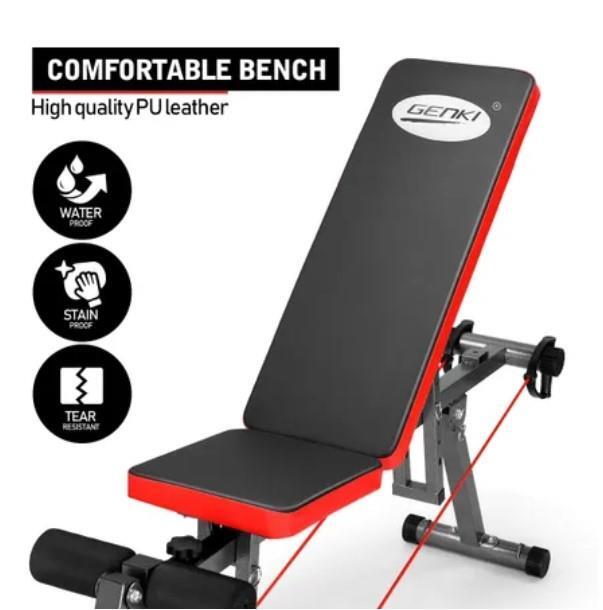 The heavy-duty powder-coated steel frame, thick soft foam cushioning and a durable waterproof PU leather cover make the Genki Black and Red Adjustable Weight FID Bench is a sturdy support for the ultimate tough workouts. With the maximum capacity of 150kg, the weight bench is suitable for different fitness projects, such as chest presses, crunches, dumbbells workouts and shoulder presses. Featuring multiple position-adjustment on the back, seat and leg, this weight bench set is designed with three position models including flat, incline and decline, which are adjustable according to your preference and needs. Elastic ropes are included for stretching and kicks are for dumbbells storage. Start your home gym or backyard workout journey now!