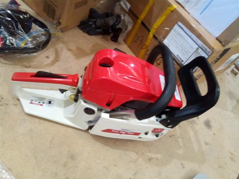 Comes with genuine Oregon bar and chain, you don't have to worry about the cutting performance anymore. Holding it up, you'll appreciate the balanced weight distribution design and double recoil combined system for ease of handling and control for long periods of use. Your shoulders, hands and arms will thank you for it. The robust 20" bar and chain will make light work of any sawing tasks and for extra safety, an automatic braking system (which can be manually operated too) instantly stops chain rotation when a kickback occurs.