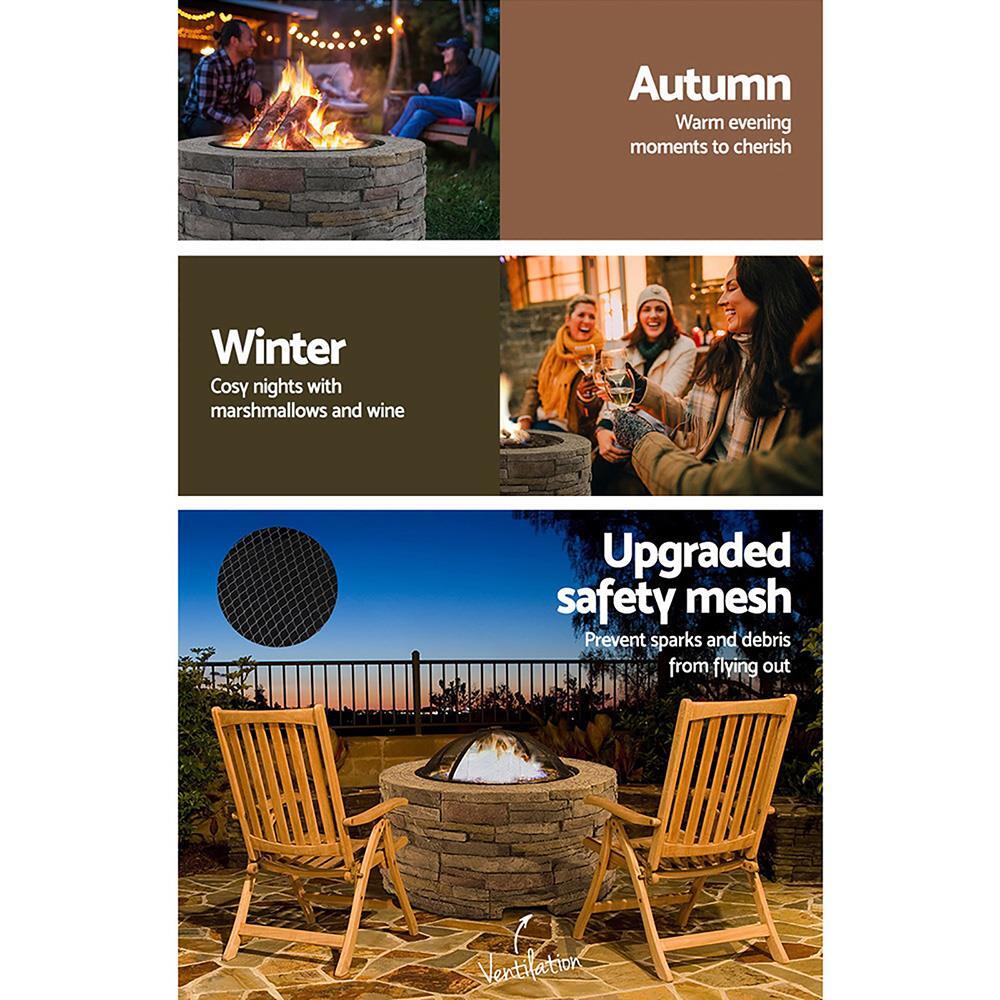 Crafted to look like authentic stone construction, the Grillz Fire Pit Round Table exudes all the vibes of a rustic fireplace from times long past. And now, you can have this lovely faux stone fire pit round table in the confines of your lovely backyard. With its spacious burning area, the fire pit table can handle a large amount of charcoal or firewood to keep the fires burning well through the night. Just perfect to provide a heartwarming experience for all who gathers around it for any event under the cool night sky. Or even during the day. Designed to be heat resistant, the fire pit table also comes with an upgraded safety mesh dome to prevent straying sparks and debris. Not least, a free poker is included with your purchase.