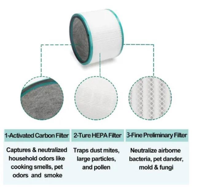 Widely compatible with Dyson purifiers DP01 DP03 HP00 HP01 HP02 HP03 Models. Part # 968125-03. Compatible with: first generation Dyson desk purifiers part # 305214-01, 308033-01, 308034-01, 309423-01, 308404-01 first generation purifying heaters Pure Hot + Cool Link part numbers: 305571-01, 305570-01, 307058-01, 308396-01, 308395-01. Please verify the height of your filter to ensure that this is the correct filter.