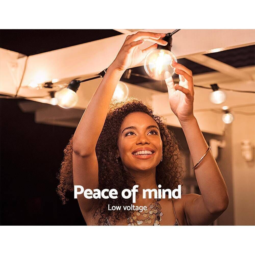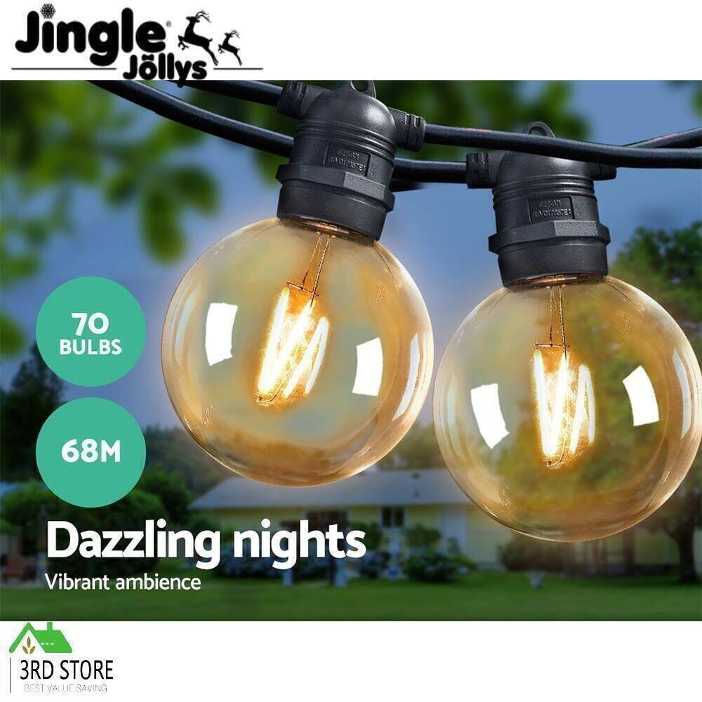 Our Jingle Jollys Festoon String Lights are great not only for wedding and birthday parties or special events, but also for creating a warm, inviting ambience with its bright and mellow glow. Suitable for both indoor and outdoor use, its IP44 rating means that it can be used in the rain and all weather conditions. Each bulb draws a very low voltage and is placed 90cm equally apart from each other throughout its 68m length for an even distribution of illumination and brightness. Not least, the each bulb has a 20,000 hours lifespan so that you can get to use the string lights for quite a while.