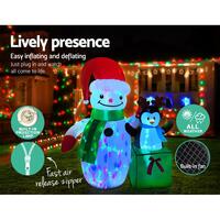 Features 1.8m snowman and penguin in giftbox Weather-resistant polyester Built-in colourful lighting projection Powerful built-in fan to keep display inflatable stable and firm Ensemble fast and it deflates easily Pegs and ropes included Easy storage SAA-certified adaptor Note: Transformer must be protected from the weather