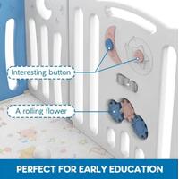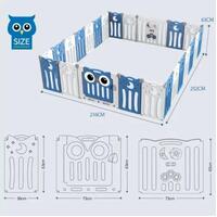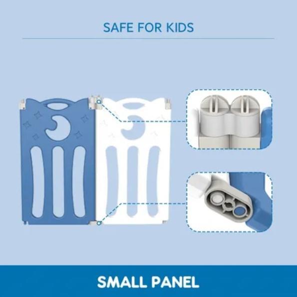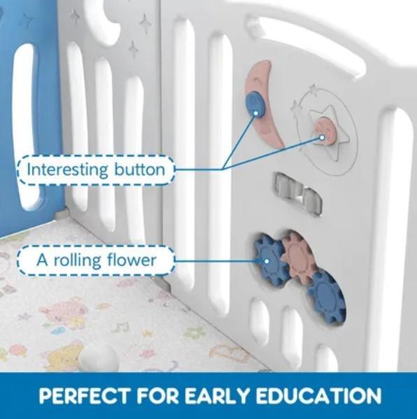 Make sure your little baby plays in a safe area while you get your work finished. Made of non-toxic and eco-friendly PE material, the Kidbot 24 Panel Baby Safety Gate Baby Playpen provides a large space for your little one to play around safely. For additional security, the baby fence is built with an external door lock. Approved by Safety SGS and EN71, the safety gate includes multi-shaped toys as well as a game panel, offering various entertainment for your child. Foldable and easy to install, the child gate can be used indoors or outdoors and saves space.